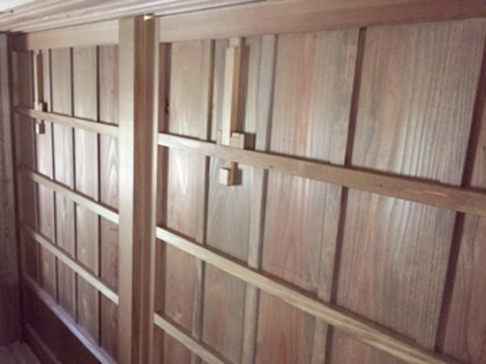 鍵まで木製のこの雨戸は、建具屋さんの仕事です。